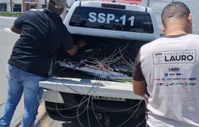 Lauro: Operação Visão Limpa remove 100 kg de cabos e fios no combate poluição visual em Buraquinho e Miragem